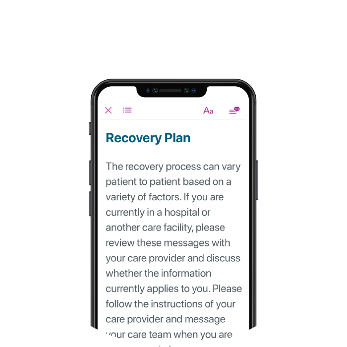 As you work to regain mobility throughout your recovery, mymobility® will be your surgical journey companion connecting you to your care team, providing you encouragement and information, collecting data about your mobility and knowing if your recovery is on track, so your surgeon can monitor your progress remotely.
