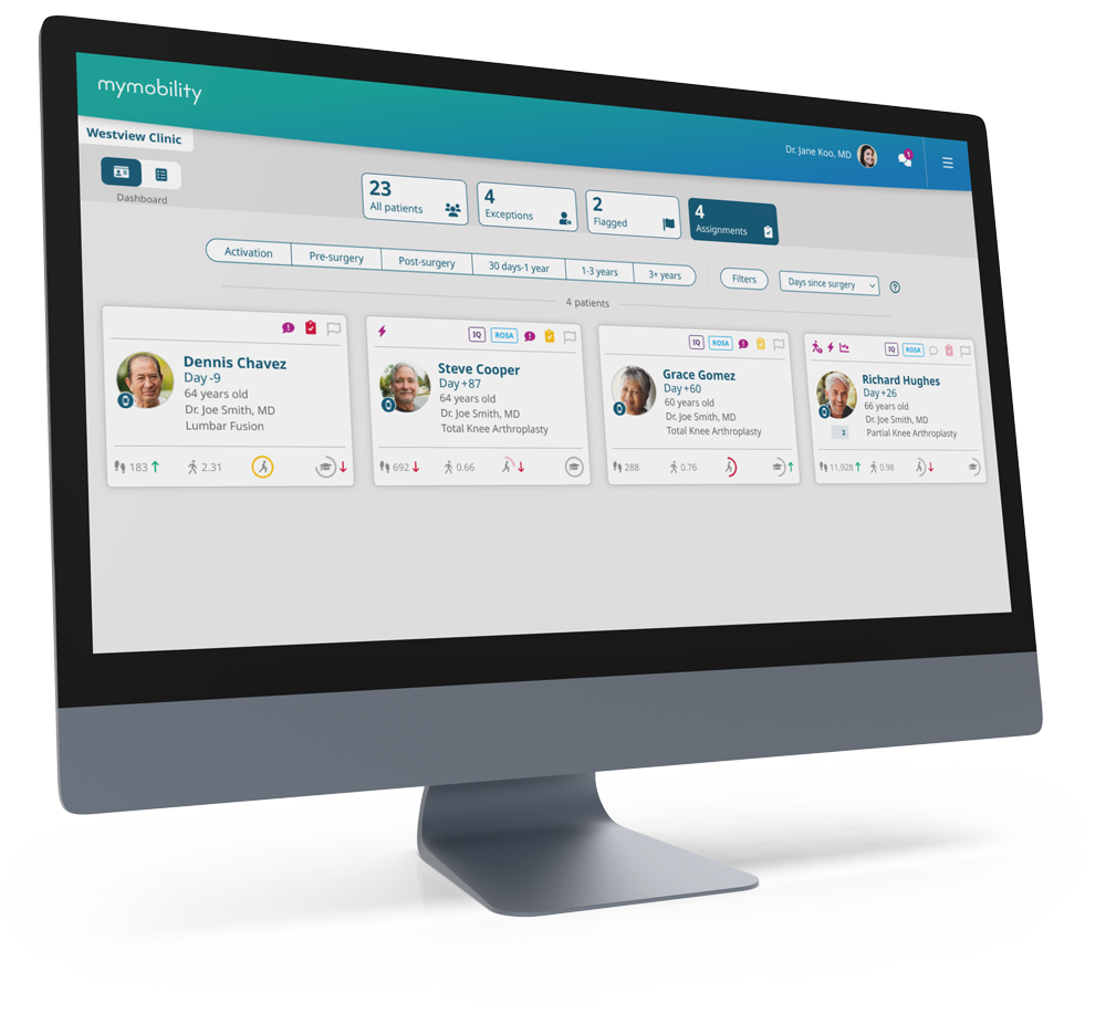 The post-operative data is available through the mymobility® Care Management Platform, offering both patients and physicians a simple to use intuitive interface.